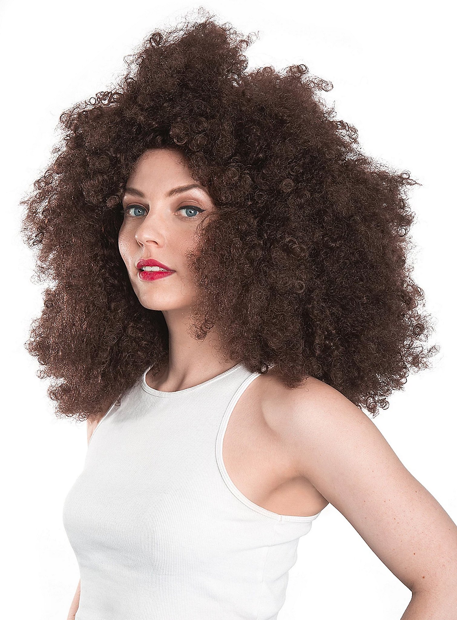 Lange Pruik Donkerbruin Gekruld