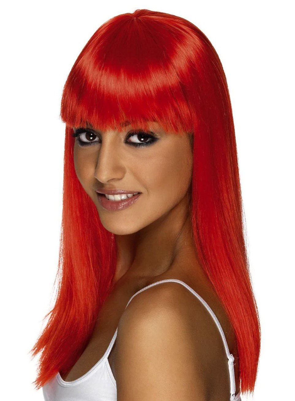 Straight Cut pruik met pony neonrood