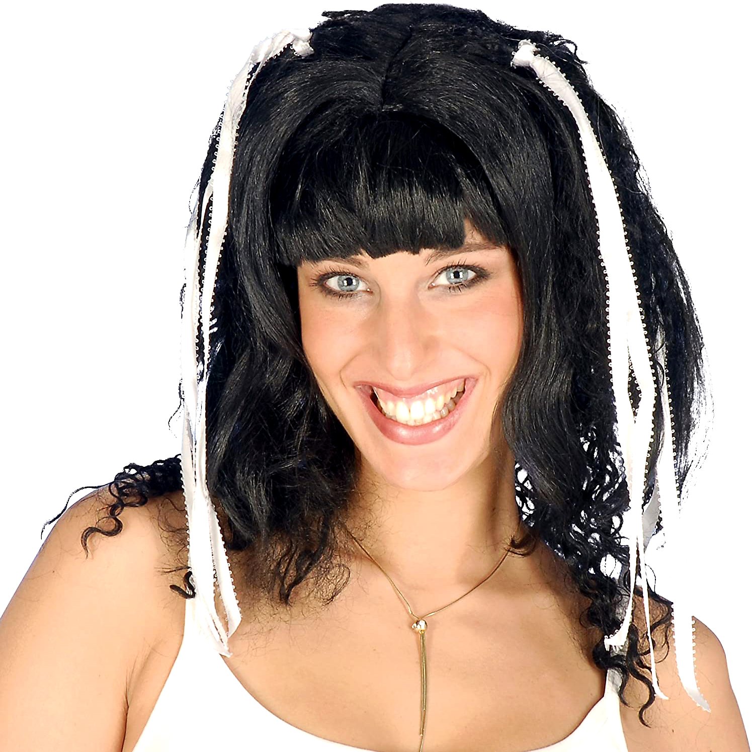 Bouffant pruik met witte linten