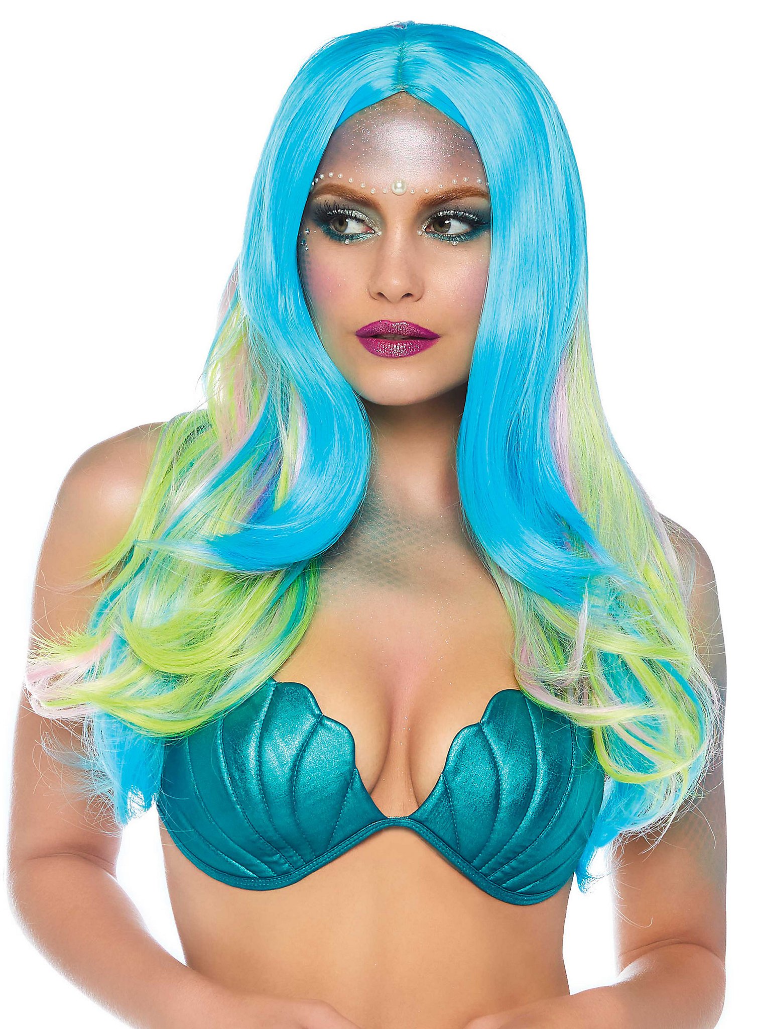 Lange Turkooizen Pruik Met Pony