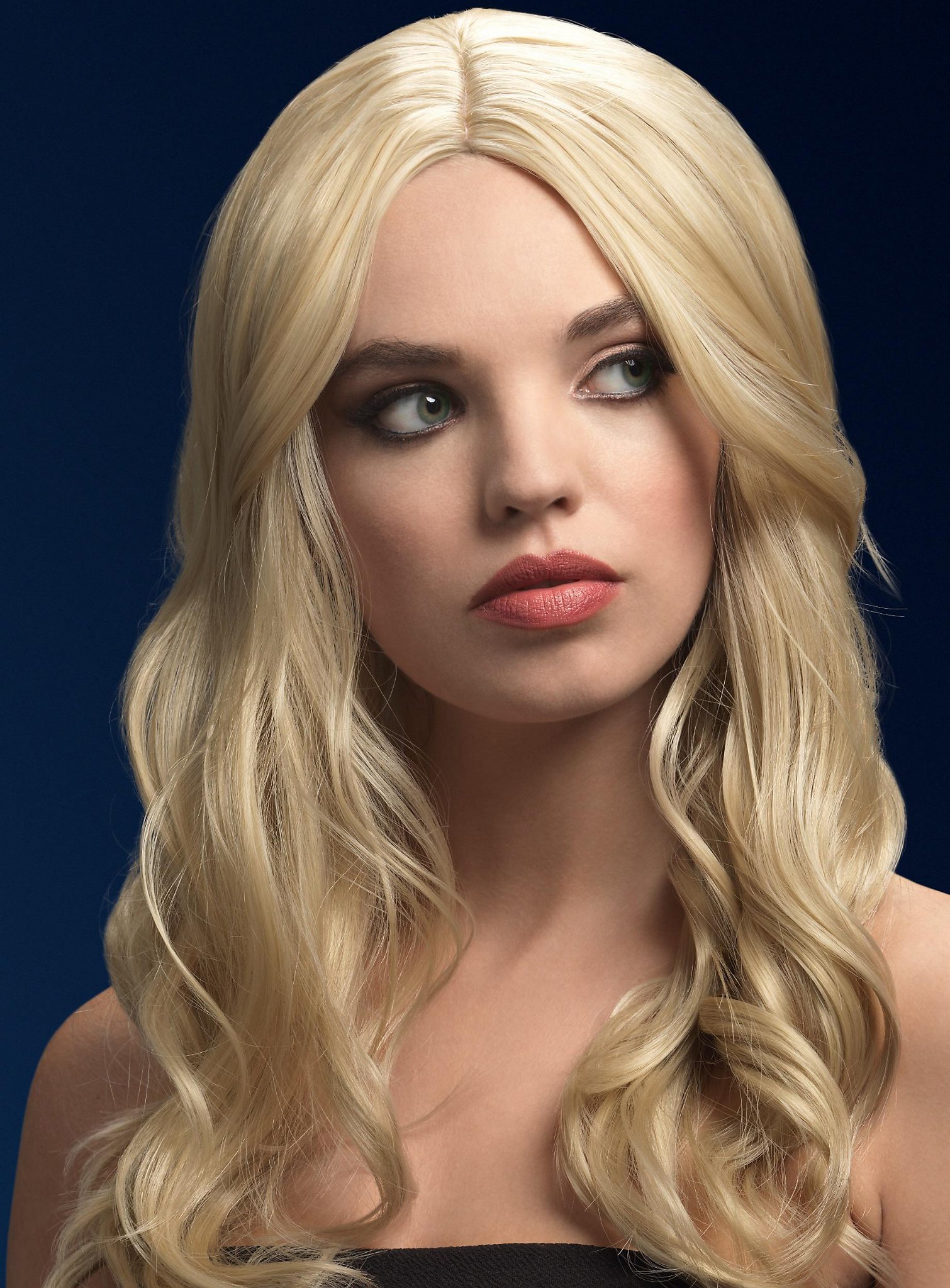 Blonde Pruike mit Pony - Lange gewellte Kunsthaare für Frauen
