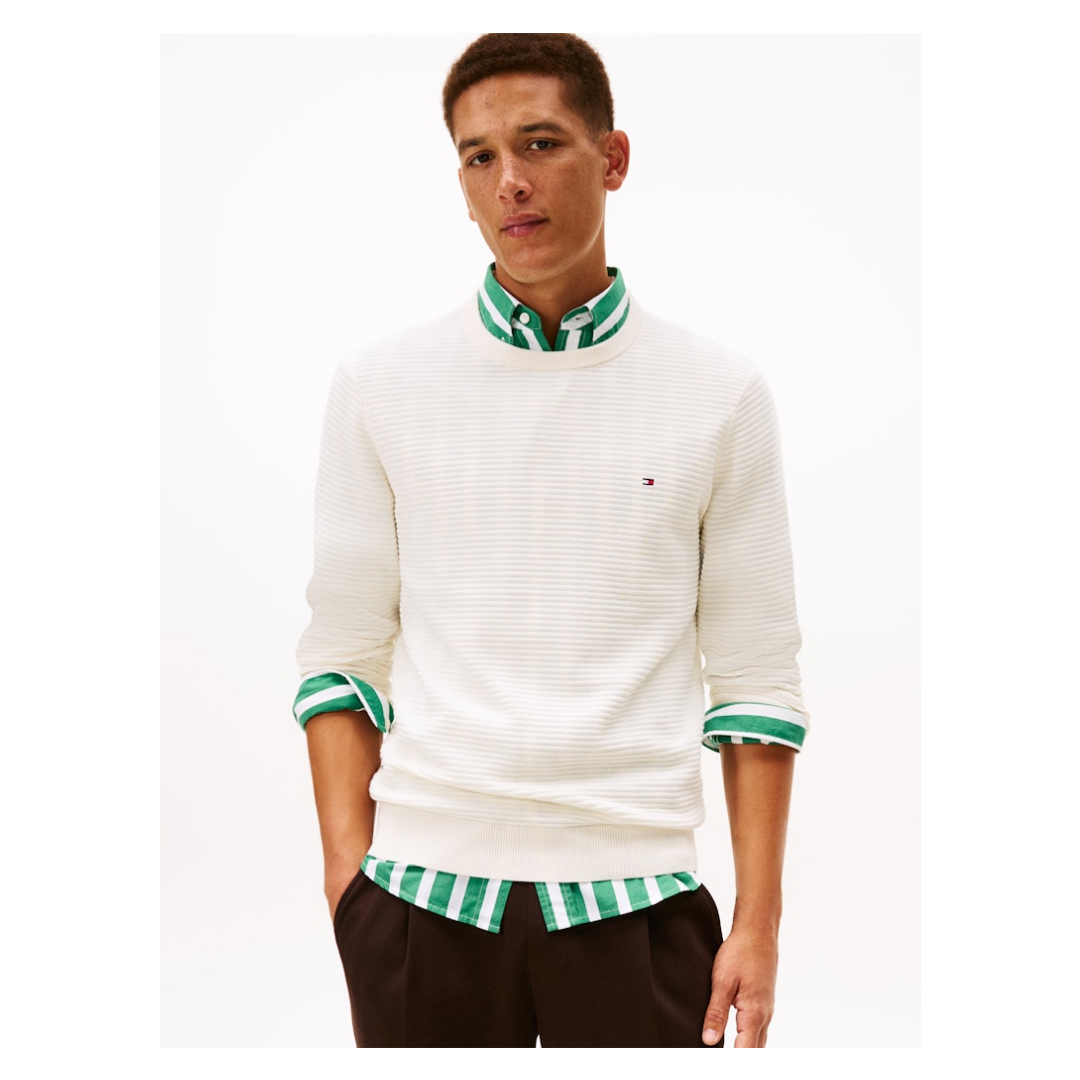 Herren Tommy Hilfiger Struktur Strickpullover, Khaki, Camel, Braun,Grün, L, Herren-Pullover, Strick-Pullover-Rundhalspullover