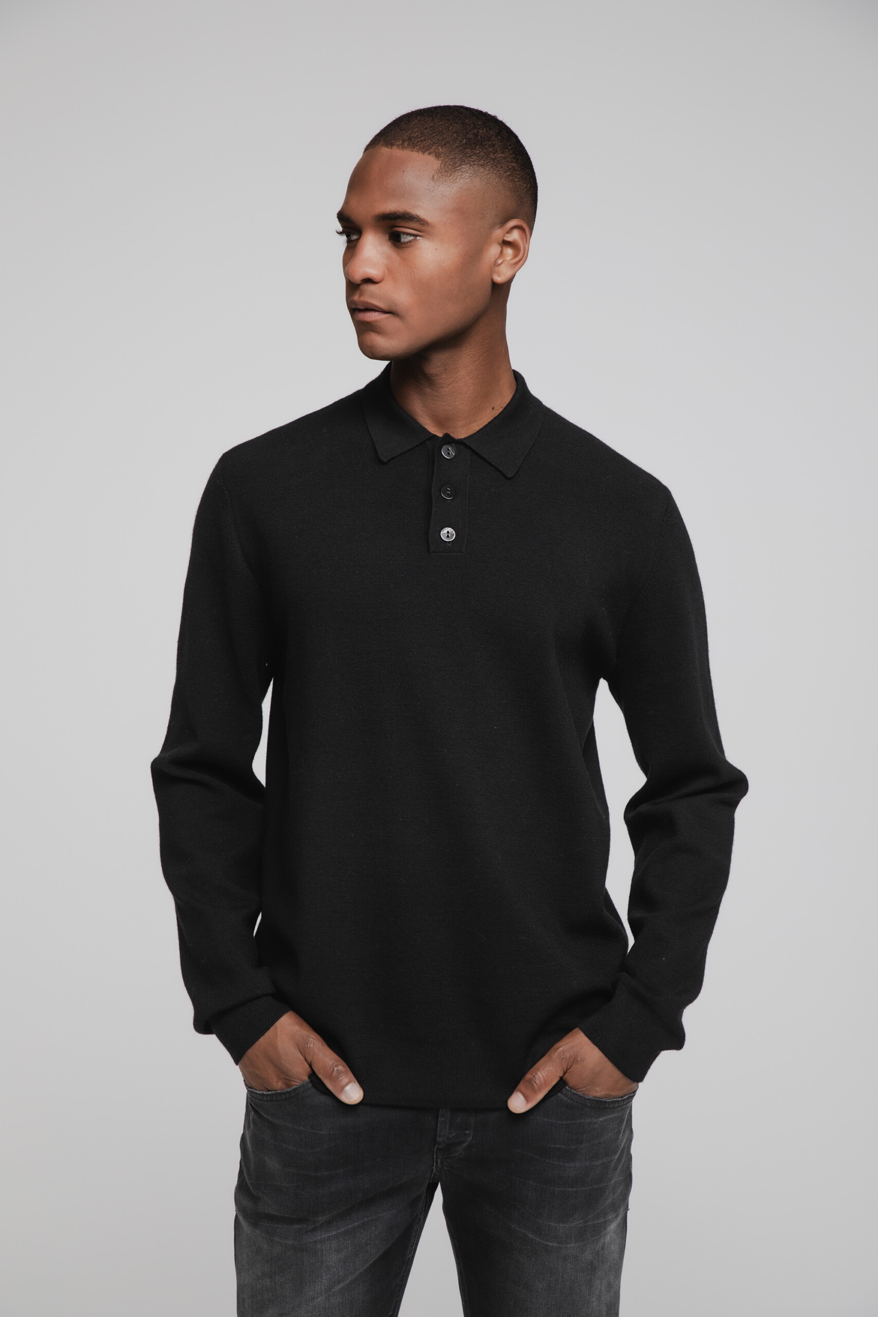 KIEFERMANN Pullover in Hemd-Optik aus Merinowolle Herren (02 SCHWARZ)
