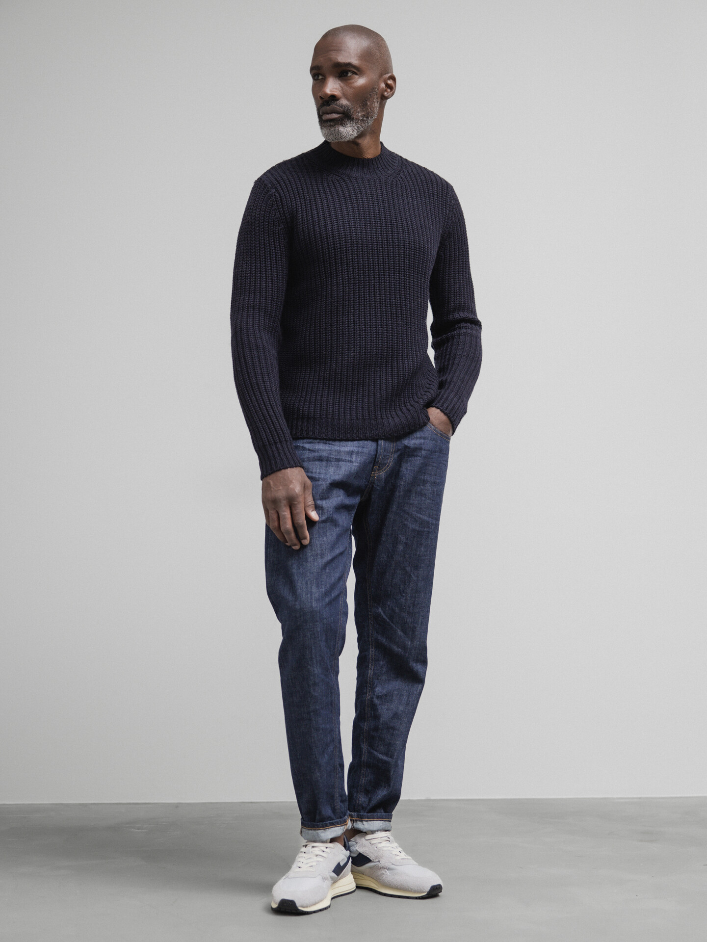 Herren Maerz Rollkragenpullover Dunkelblau Regular Fit Turtleneck-pullover / Rolli / Feinstrickpullover maschinenwaschbar (Superwash) Merinowolle