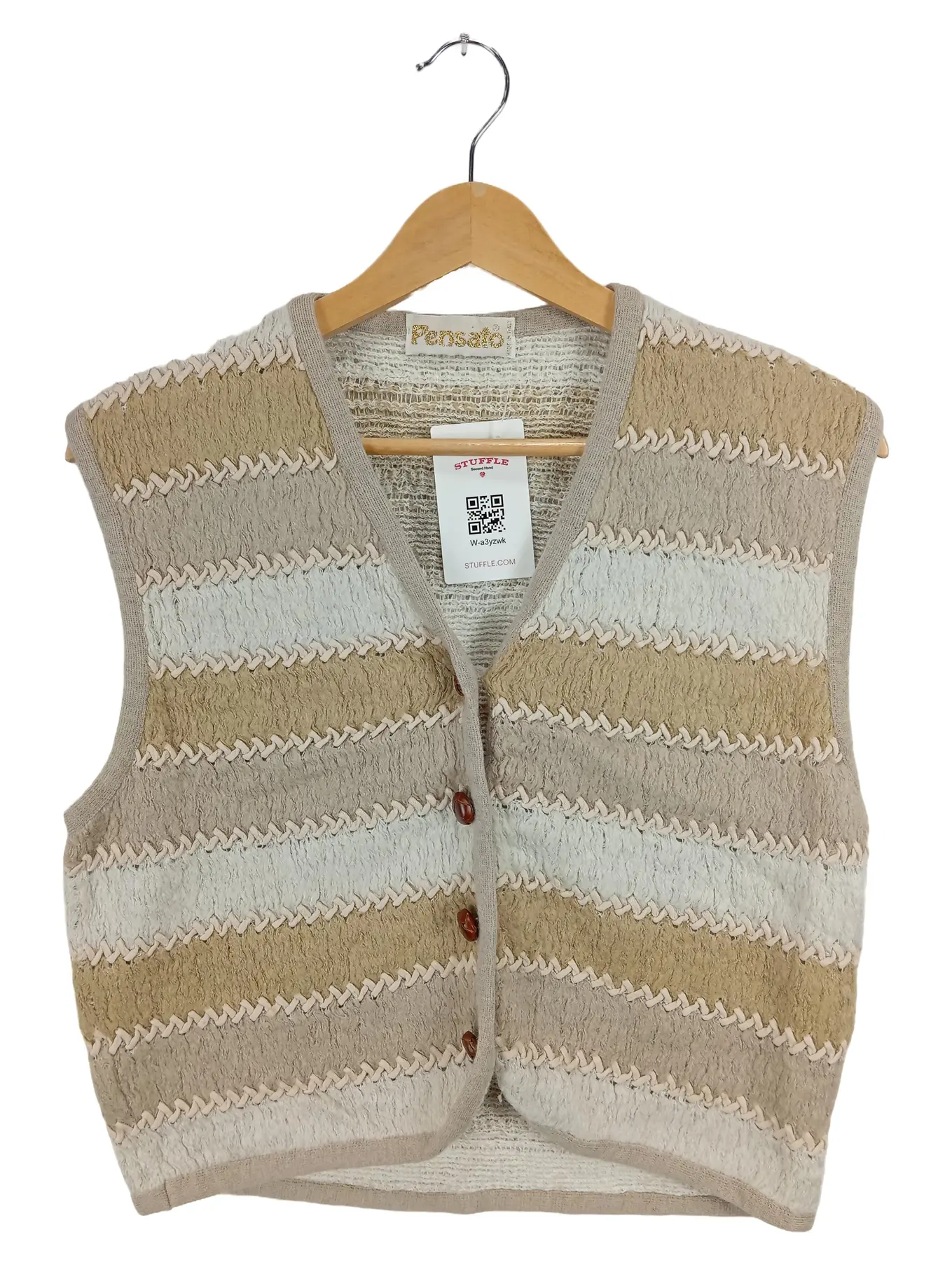 FERNANDO PENSATO Pensato Pullunder Damen Beige Gestreift Strickweste Vintage Gr. 38/M
