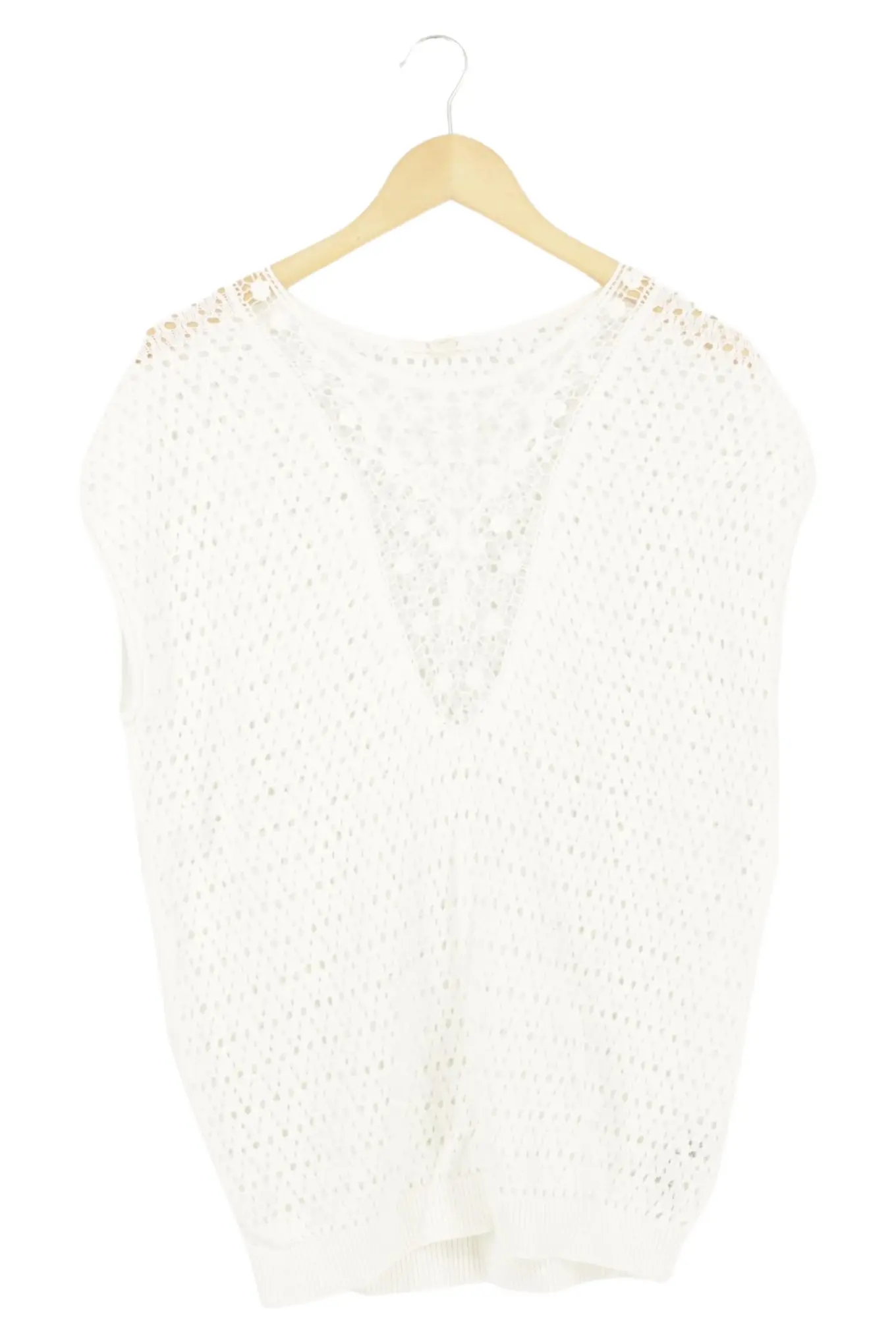 ESPRIT Damen Pullunder Weiß Gr. 32/XS Lochmuster Elegant Preppy