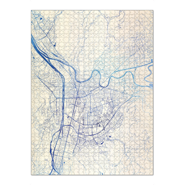 Puzzle Ravensburger "Grenoble Frankreich Blue Infusion Map I" artboxONE - Städte,Reise,Kartografie - Städte,Stadtkarte,Wasserfarbe,Rosequartz