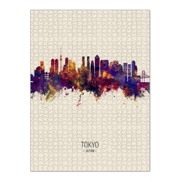 Puzzle Ravensburger "Tokyo Japan Skyline Beige" artboxONE - Städte / Tokio - Tokyo,Japan,Skyline,Cityscape,Painting,Watercolour,Stadtbild