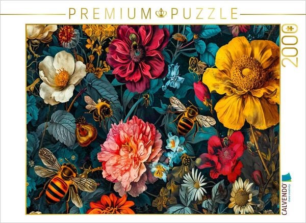 CALVENDO Puzzle Summende Bienen im Blumenbett. | 2000 Teile Lege-Größe 90x67cm Foto-Puzzle für glückliche Stunden