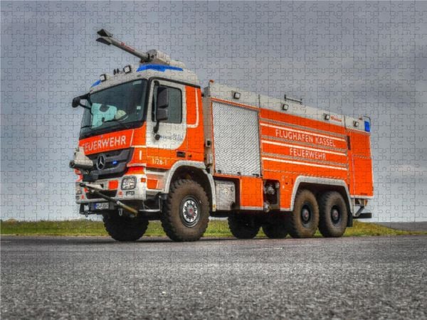 CALVENDO Puzzle Rosenbauer FLF 9700 / 250 MB Actros 3360 - Airport Kassel | 1000 Teile Lege-Größe 64x48cm Foto-Puzzle für glückliche Stunden