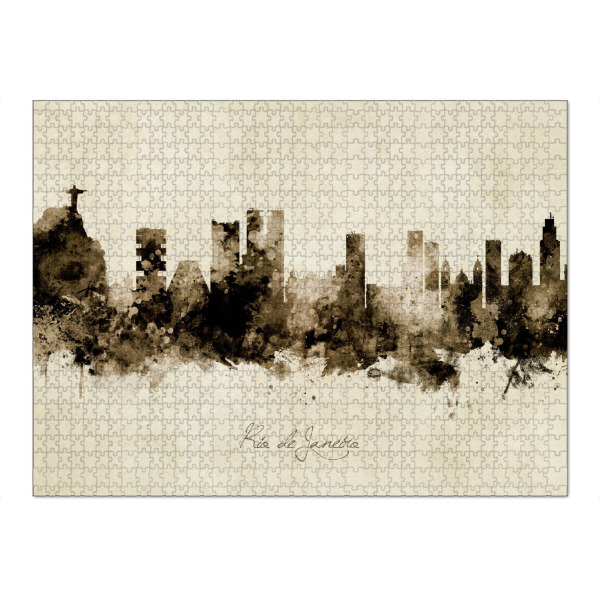 Puzzle Ravensburger "Rio de Janeiro Skyline Sepia" artboxONE - Städte - Rio de janeiro,Brazil,Skyline,Cityscape,Stadtbild,Watercolor,Painting