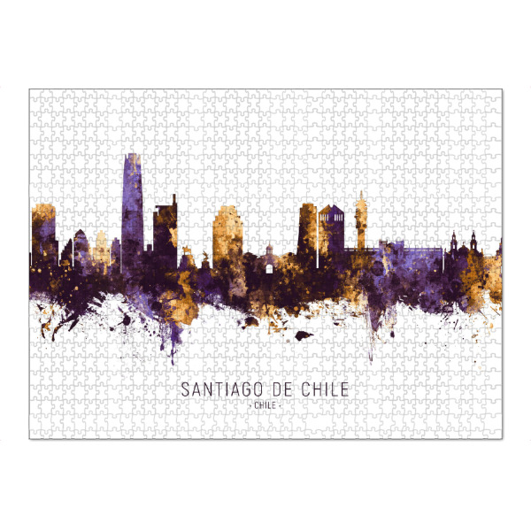 Puzzle Ravensburger "Santiago de Chile PurpleGold" artboxONE - Städte - Santiago de chile,Chile,Skyline,Cityscape,Stadtbild,Watercolor,Painting,City