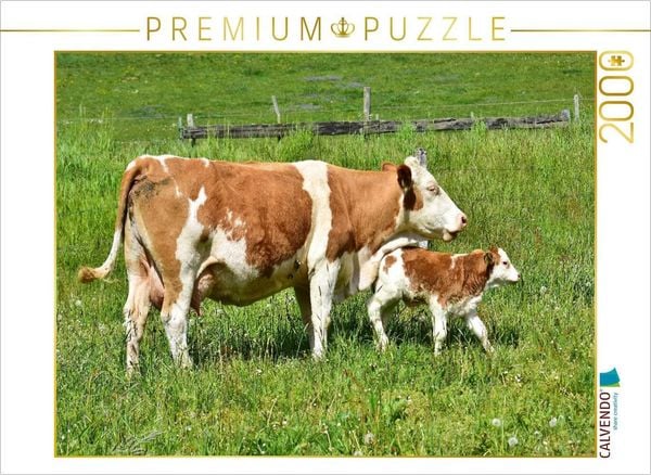 CALVENDO Puzzle Kälbchen mit seiner Mutter | 2000 Teile Lege-Größe 90x67cm Foto-Puzzle für glückliche Stunden