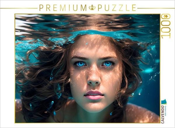 CALVENDO Puzzle Nixe mit stahlblauen Augen unter Wasser | 1000 Teile Lege-Größe 64x48cm Foto-Puzzle für glückliche Stunden
