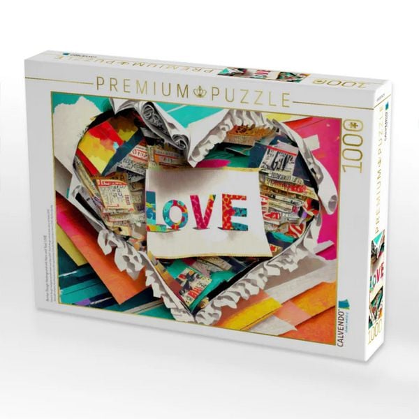 CALVENDO Puzzle Bunter Design Hintergrund mit Herz und Text LOVE | 1000 Teile Lege-Größe 64x48cm Foto-Puzzle für glückliche Stunden