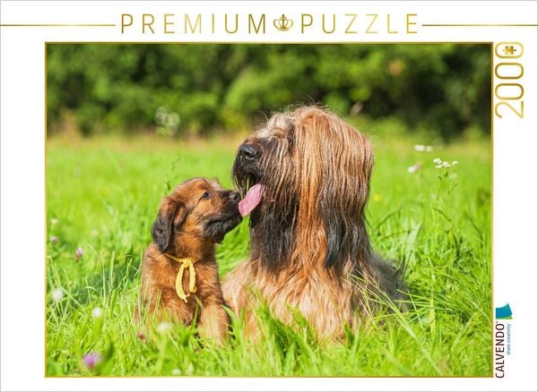 CALVENDO Puzzle Briard- Hündin mit einem ihrer Welpen | 2000 Teile Lege-Größe 90x67cm Foto-Puzzle für glückliche Stunden