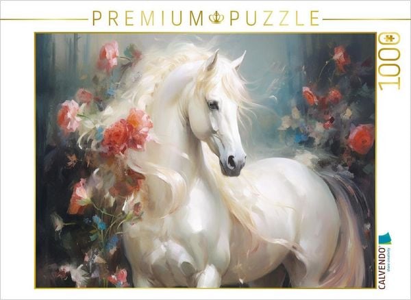 CALVENDO Puzzle Bezaubernder Schimmel mit Rosen | 1000 Teile Lege-Größe 64x48cm Foto-Puzzle für glückliche Stunden