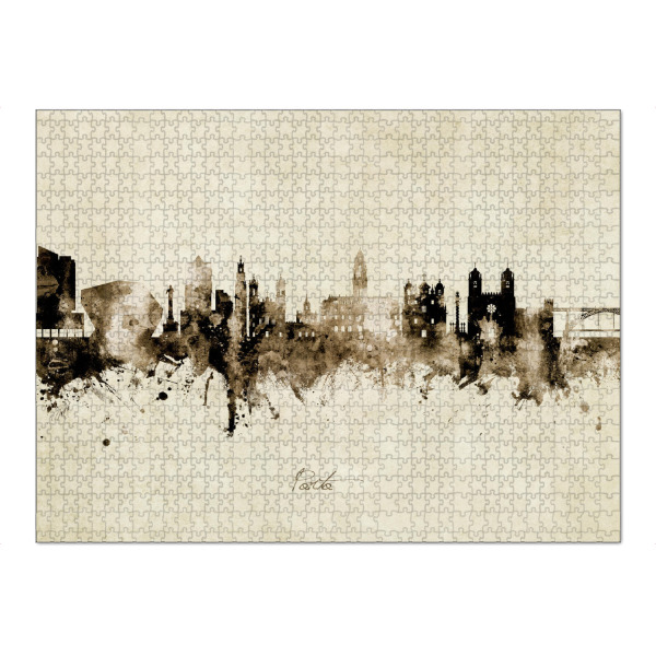 Puzzle Ravensburger "Porto Portugal Skyline Sepia" artboxONE - Städte - Porto,Portugal,Skyline,Cityscape,Stadtbild,Watercolor,Painting - Bild porto