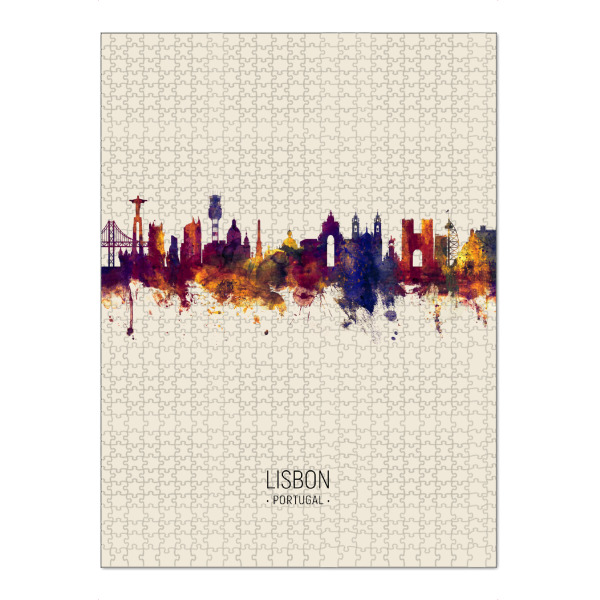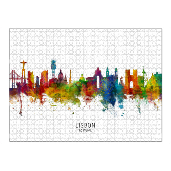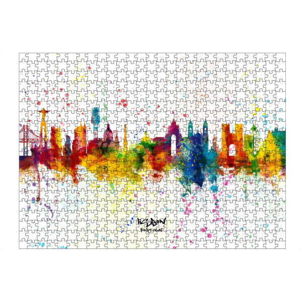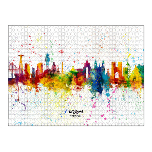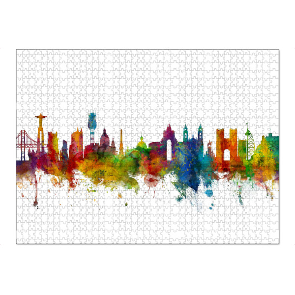 Puzzle Ravensburger "Lisbon Portugal Skyline Splash" artboxONE - Städte - Lisbon,Portugal,Skyline,Cityscape,Stadtbild,Watercolor,City,Europe