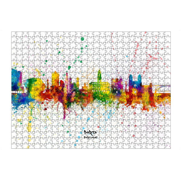 Puzzle Ravensburger "Porto Portugal Skyline txt" artboxONE - Städte - Porto,Portugal,Skyline,Cityscape,Stadtbild,Watercolor,Painting - Bild porto
