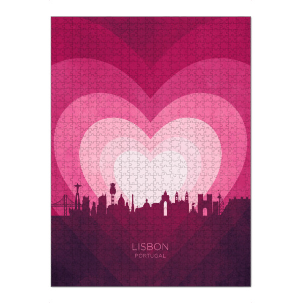 Puzzle Ravensburger "Lissabon Skyline Herz rosa" artboxONE - Städte - Lissabon,Portugal,Herz,Liebe,Romantiker,Valentinstag,Skyline,Stadtbild