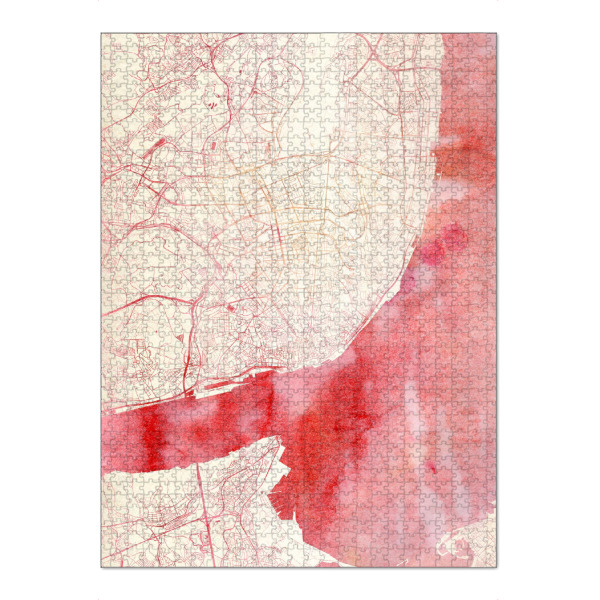 artboxONE Puzzle "Lissabon Portugal Map Rose And Serenity I" artboxONE - Städte,Reise,Kartografie - Städte,Stadtkarte,Wasserfarbe,Rosequartz