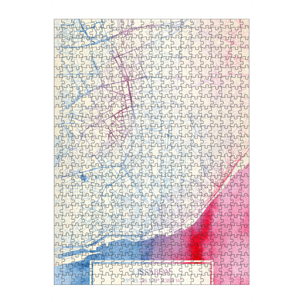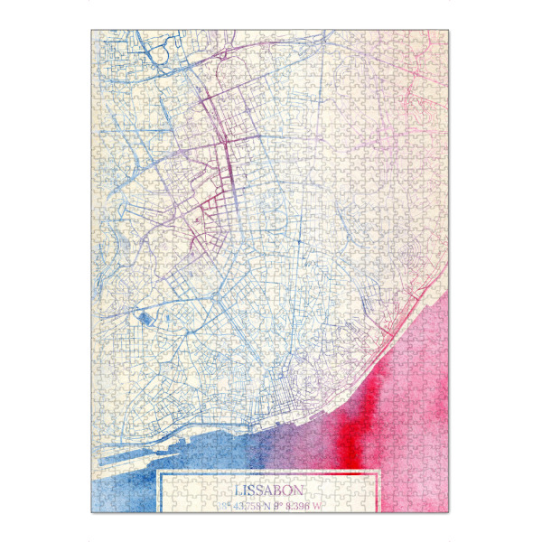 artboxONE Puzzle "Lissabon Portugal Blue Infusion Map I" artboxONE - Städte,Reise,Kartografie - Städte,Stadtkarte,Wasserfarbe,Rosequartz