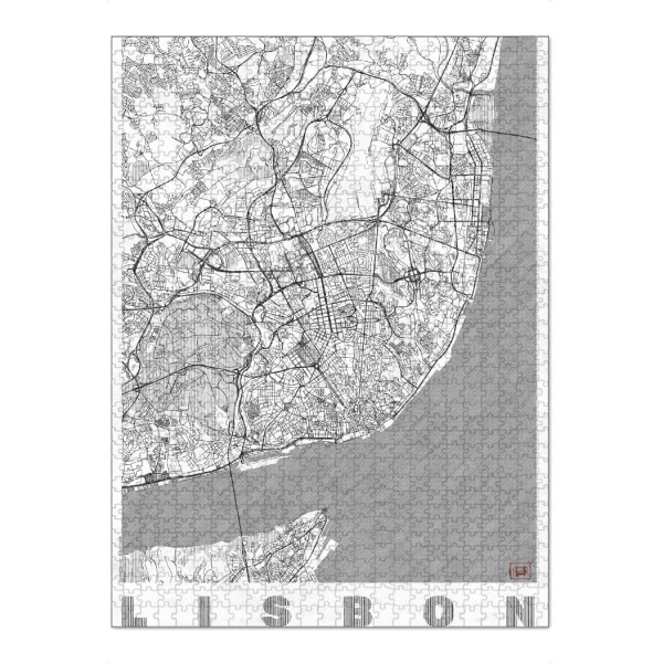 Puzzle Ravensburger "Lissabon, Portugal 2" artboxONE - Städte,Schwarzweiß,Kartografie - Karte,Stadt,Straße,Plakat,Plan,Map,Street,Lissabon,Portugal