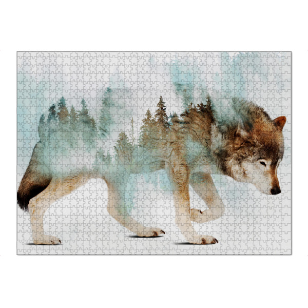 Puzzle Ravensburger "Wolf" artboxONE - Abstrakt - Wolf,Doppelbelichtung,Winter,Wald,Doppelbelichtung - Bild Wolf