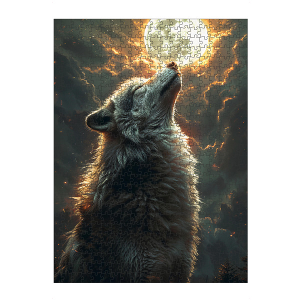 artboxONE Puzzle "Wolf heult den Mond an" artboxONE - Natur,Tiere - Wolves,Animal,Wild,Tier,Wolf,Mond,Moon,Natur,Nature,Collage,Portrait