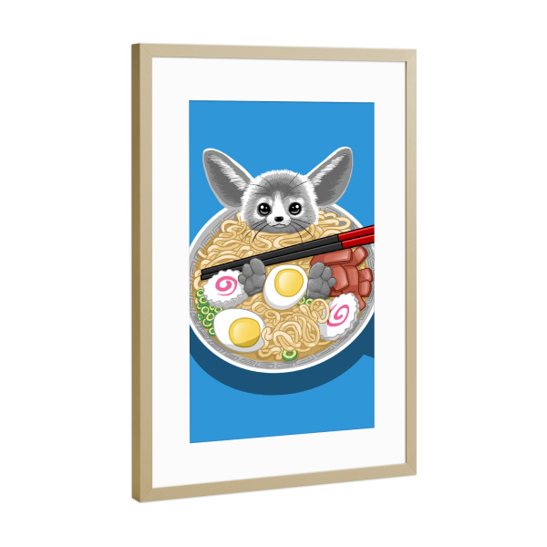 Poster mit Rahmen Gold "Ramen rabbit" artboxONE - Tiere,Essen & Trinken - Noodles,Ramen,Rabbit,Mouse,Egg,Food,Restaurant,Maus,Tier,Japan,Animal,Suppe
