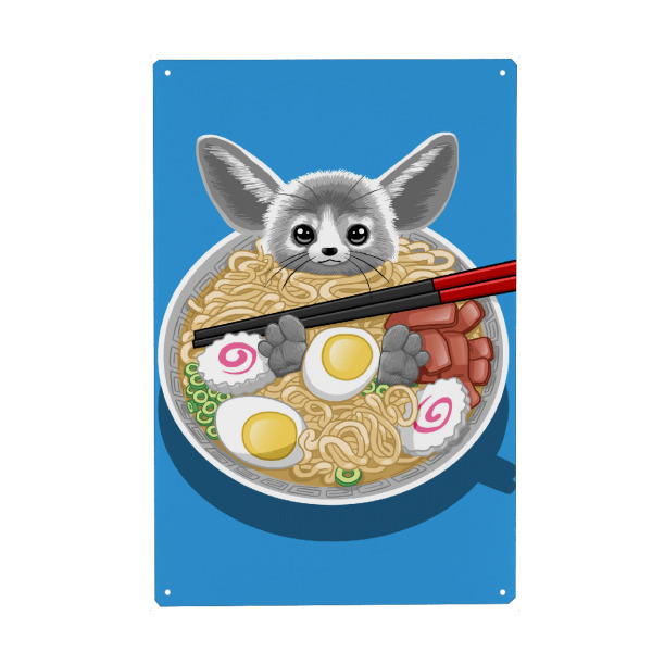 Metall Poster "Ramen rabbit" artboxONE - Tiere,Essen & Trinken - Noodles,Ramen,Rabbit,Mouse,Egg,Food,Restaurant,Maus,Tier,Japan,Animal,Suppe