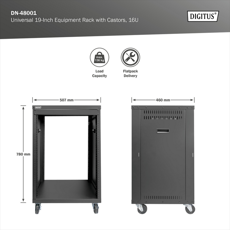 Digitus Universal 19-Zoll Equipment Rack mit Rollen Rack, Server-Gehäuse