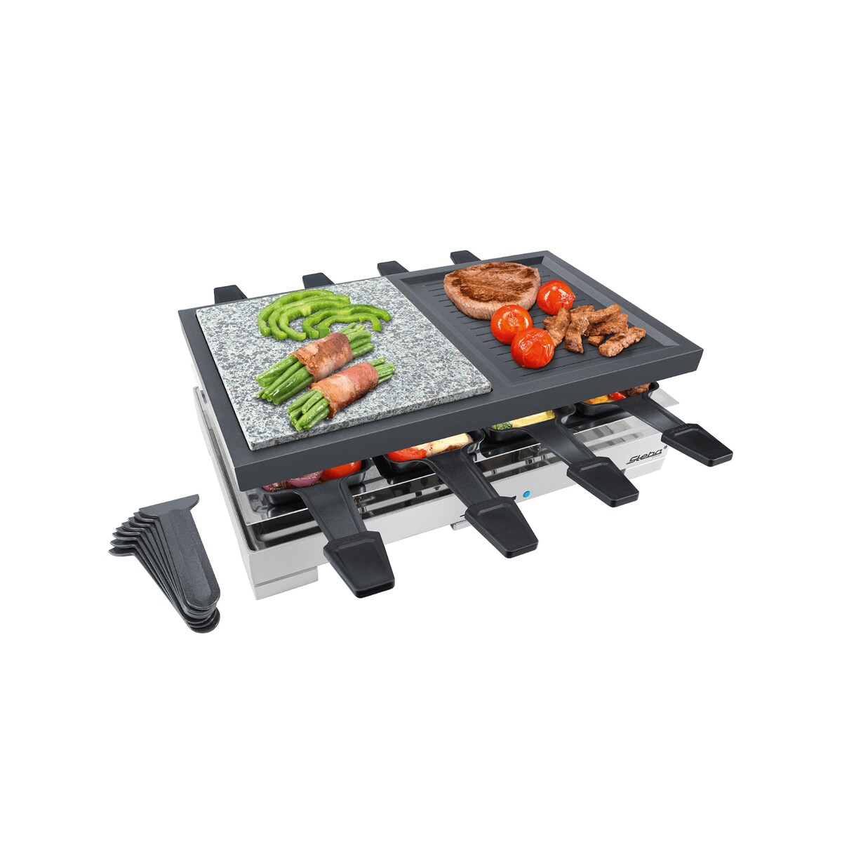 Steba Multi Raclette RC 88 mit Grillplatte und Naturstein, Ablage für Pfännchen und Pfännchenschaber