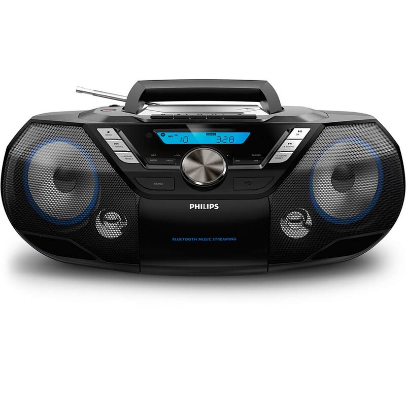 Philips TAM4205/12 Stereoanlage mit CD und Bluetooth (UKW Radio, USB, MP3-CD, Audioeingang, USB-Anschluss zum Laden, 60 W, Bassreflexlautsprecher, ...