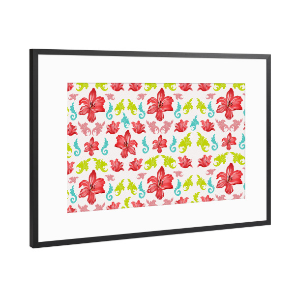 Poster mit Rahmen Schwarz (Metallic) "Lilienmuster modern auf Weiß" artboxONE - Natur,Floral