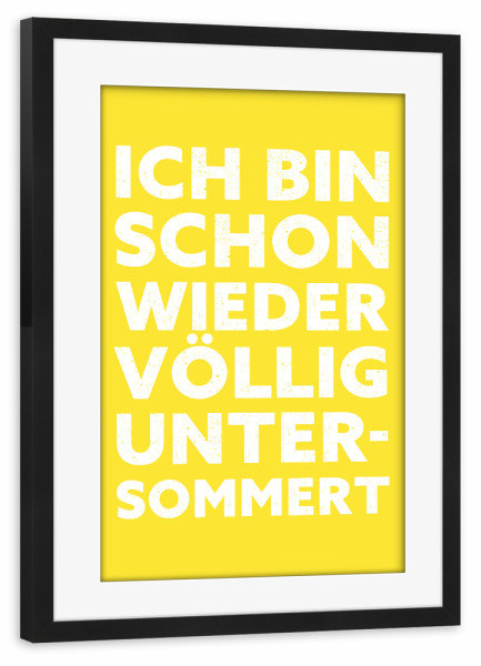 Poster mit Rahmen schwarz "Untersommert gelb-weiß" artboxONE - Typografie,Natur,Lustig