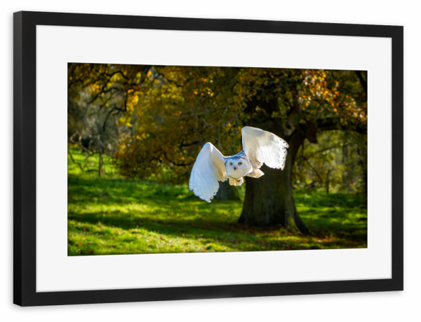Poster mit Rahmen schwarz "Ein weiße Schneeeule" artboxONE - Tiere - Eule,Schneeeule,Vogel,Wildlife,Wildtier