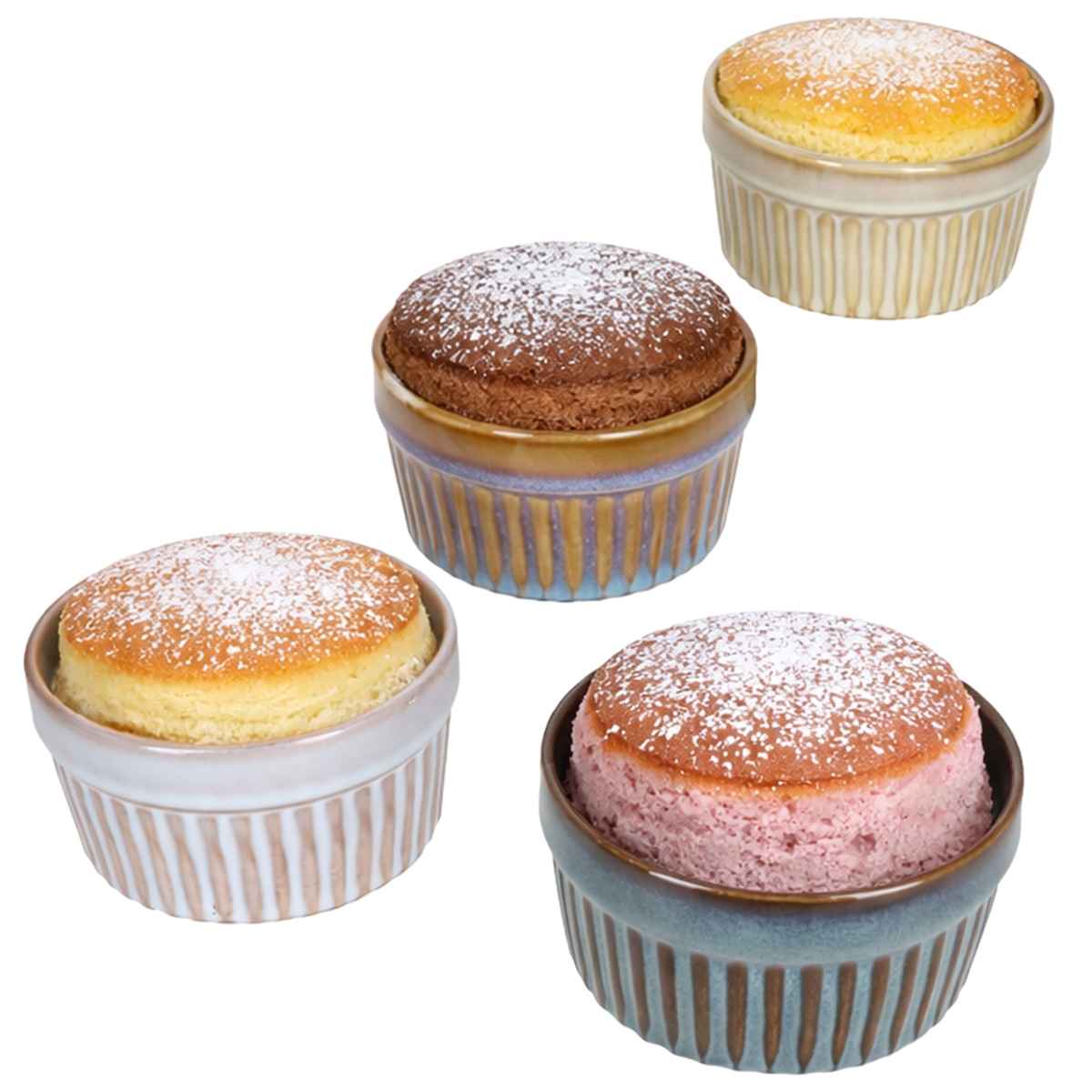 4er Set Gustos Soufflé Schälchen Steingut Ramekins 4 Farben 180ml Ø9cm