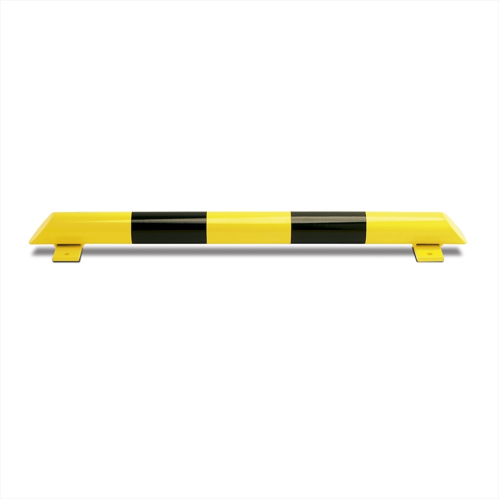 Rammschutz-Balken Stahlrundrohr Ø 60 mm zum Aufdübeln mit abgeschrägten Enden gelb-schwarz L = 1200 mm H = 115 mm