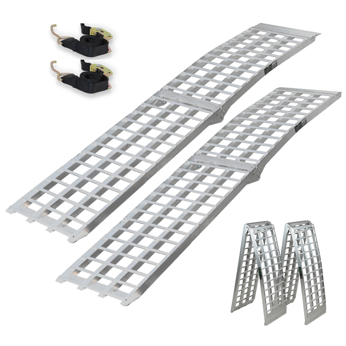 Baumarktplus TRUTZHOLM 2 x Auffahrrampe 2-fach klappbar 198 cm Traglast 680 kg Alu grau gerillt/ gelocht Rampe Verladerampe