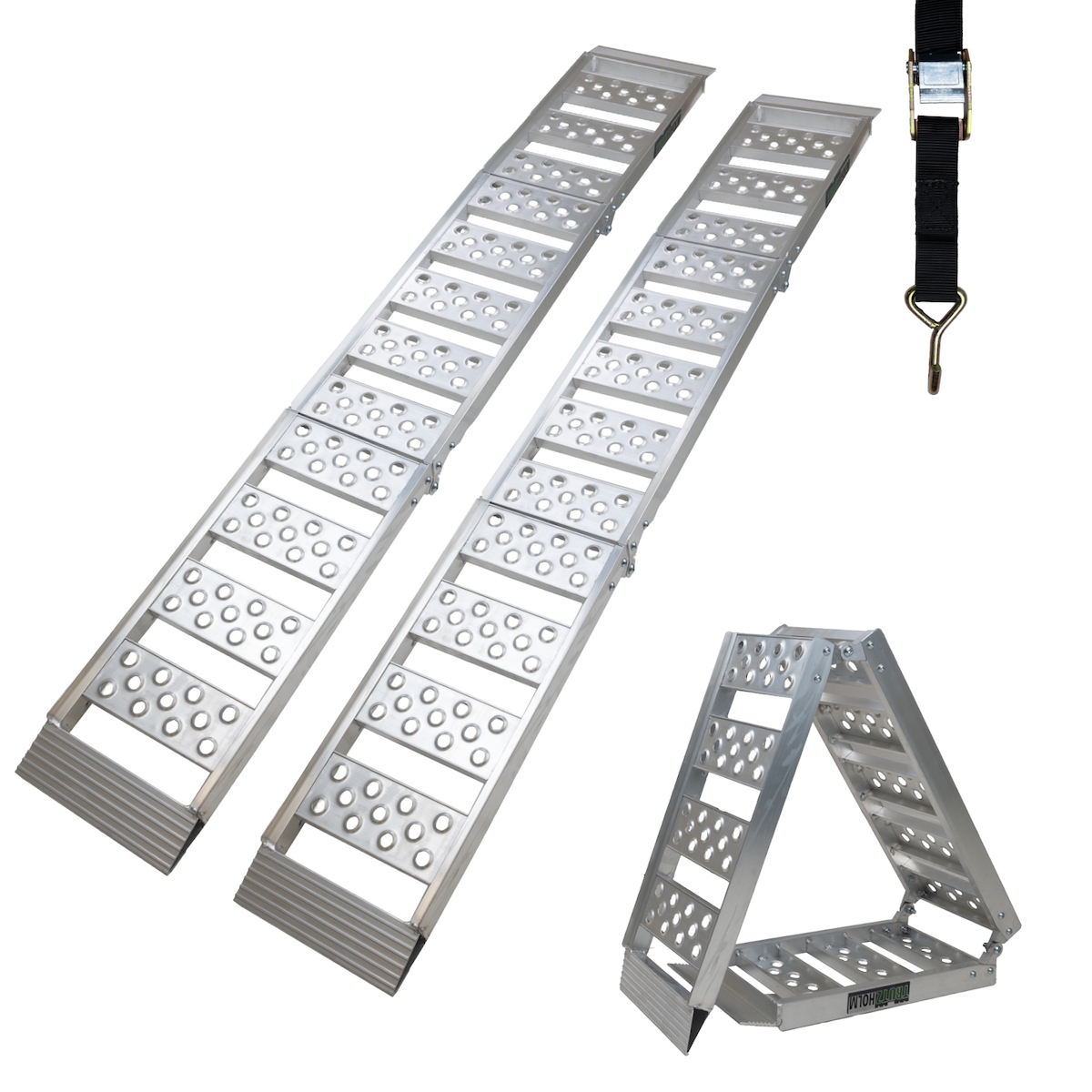 Aluminiumrampen, Dreifach Faltbare Lastgurten-Rampe - 700 kg Klappbare Laderampe für Motorräder, Traktoren, ATV/UTV, Lkws - Rasenmäher, Schneefr...