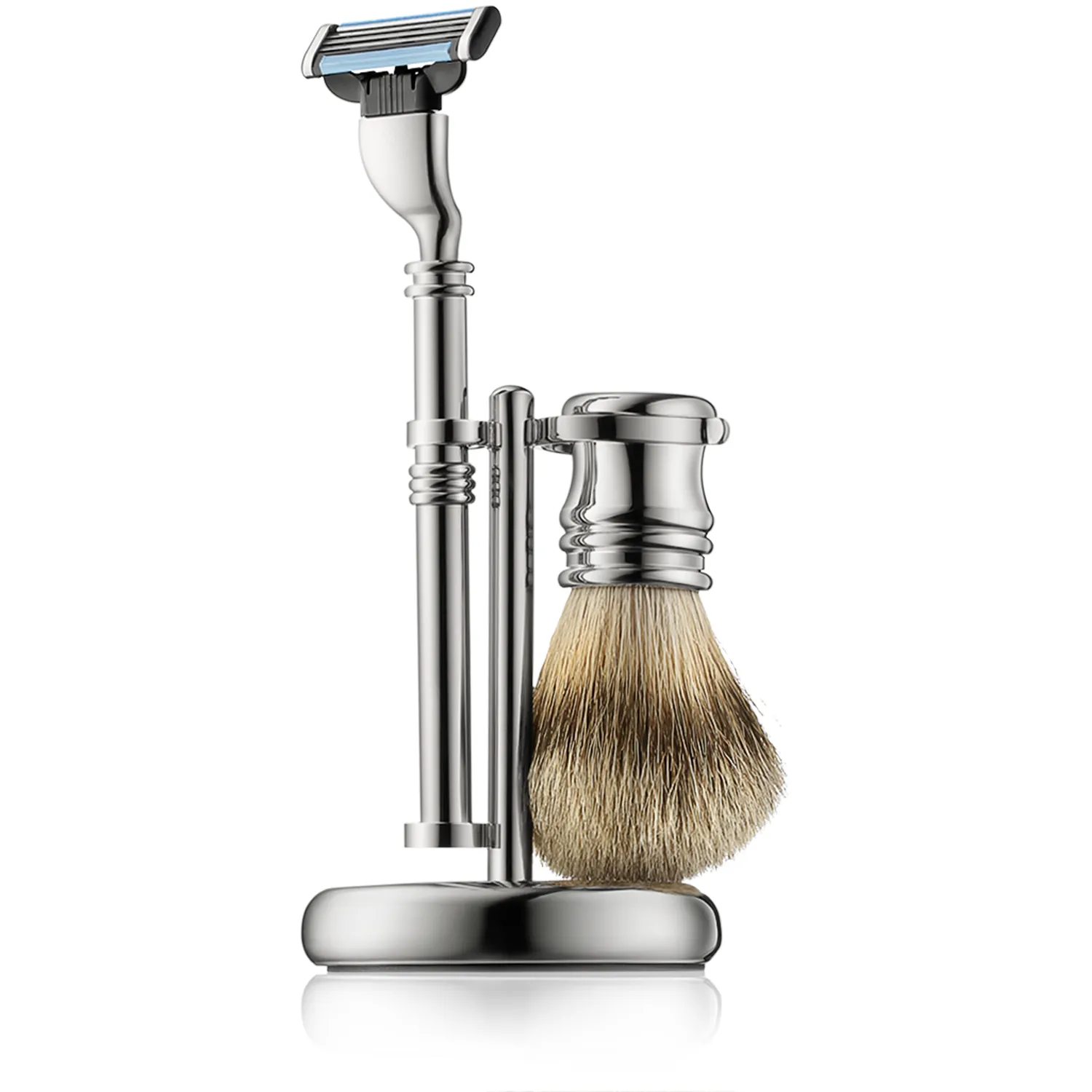 Golddachs Rasier-Sets Rasierset silber mit Dachs-Zupfhaar (3-teilig)