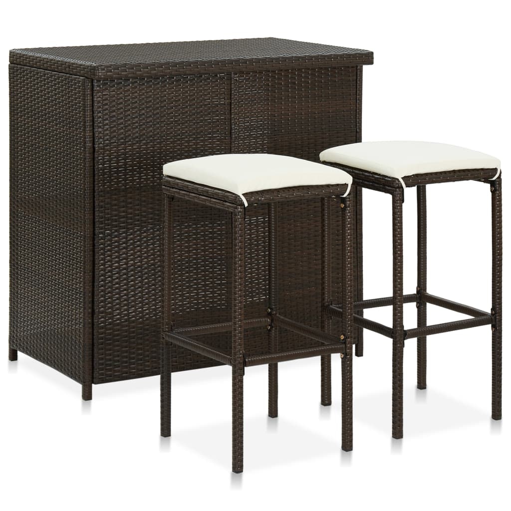 vidaXL 3-tlg. Bar Set Poly Rattan Braun