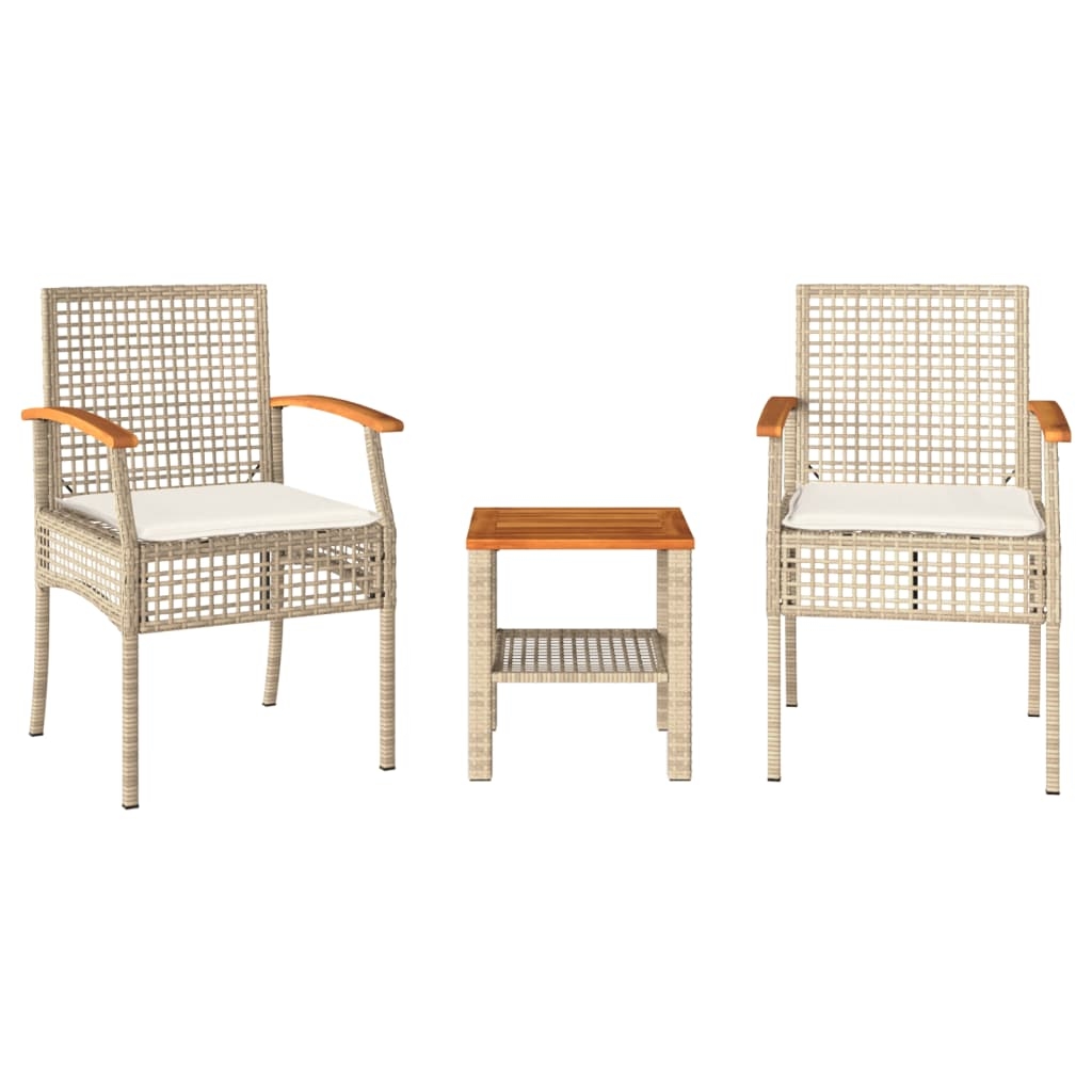 vidaXL 3-tlg. Bistro-Set mit Kissen Beige Poly Rattan Akazienholz
