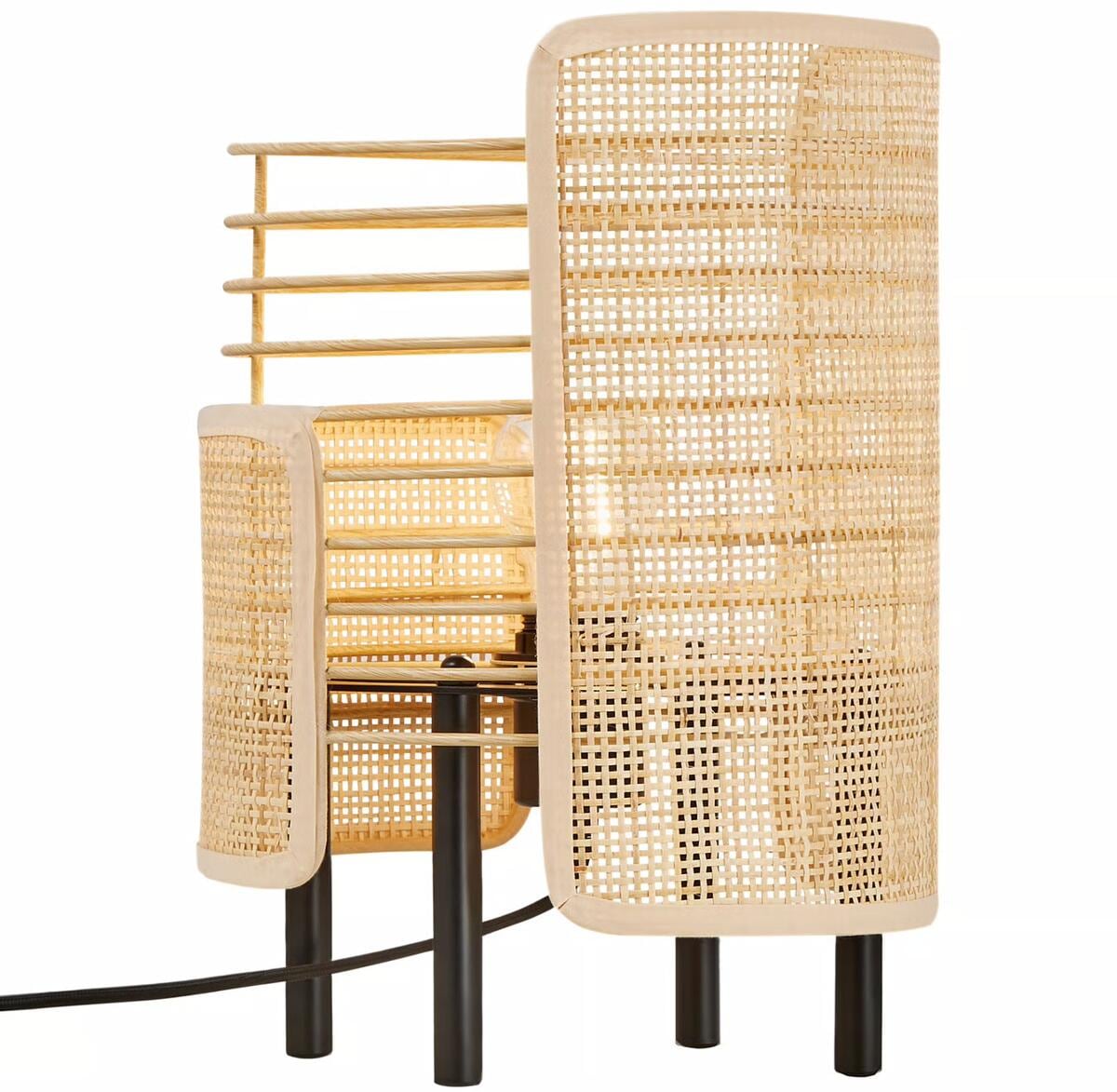 BRILLIANT gemütliche Tischleuchte SILEMIA |Tischlampe in schwarz matt mit Rattan Details | E27 Fassung max. 52W | Metall/Rattan