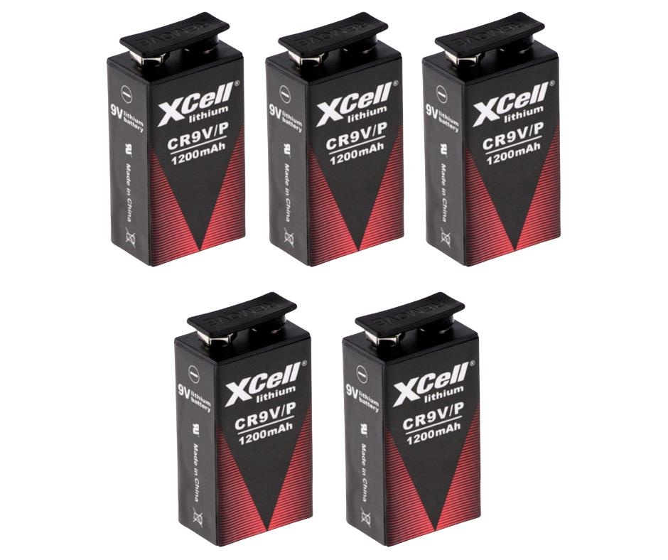 5x XCell Lithium 9V Block Hochleistungs- Batterien für Rauchmelder / Feuermelder - 10 Jahre Batterie Lebensdauer