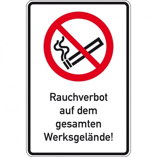 Schild I Verbots-Kombischild Rauchverbot auf dem Werksgelände, Aluminium RA0, 600x900mm, DIN EN ISO 7010, nach StVO P002