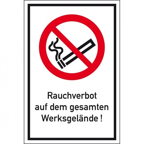 Dreifke Schild Rauchverbot Werksgelände ISO 7010, Kombischild, Alu, 400x600 mm