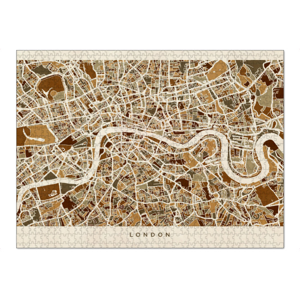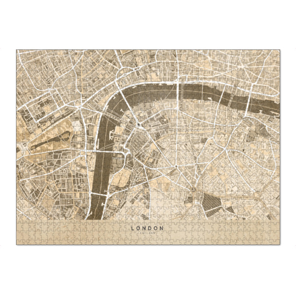 Puzzle Ravensburger "Sepia vintage map downtown London" artboxONE - Kartografie - Sepia,Vintage,London,Map,Karte,England,Distressed,Beige,Brown